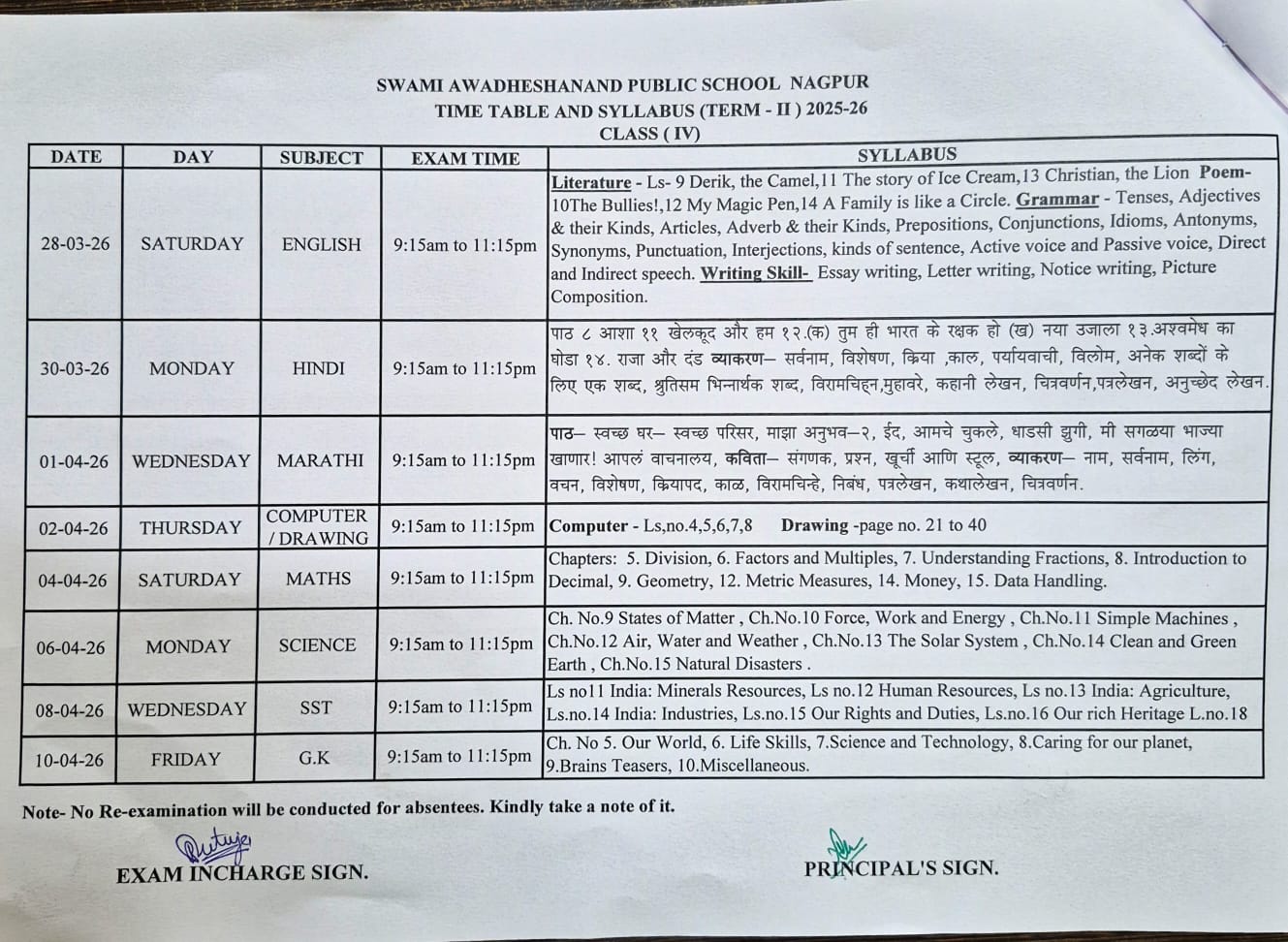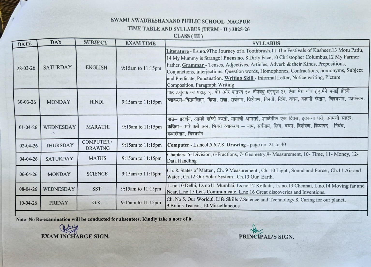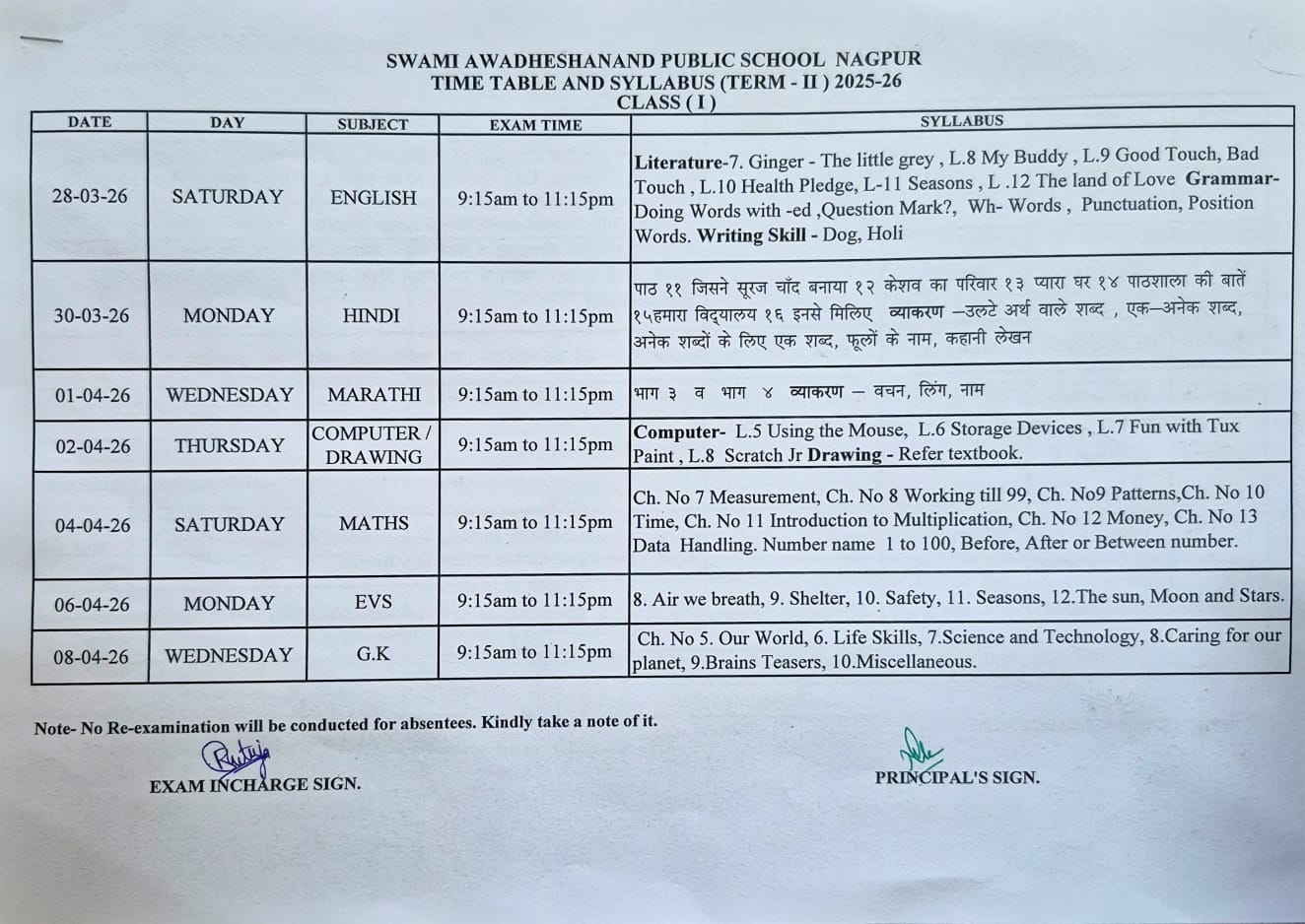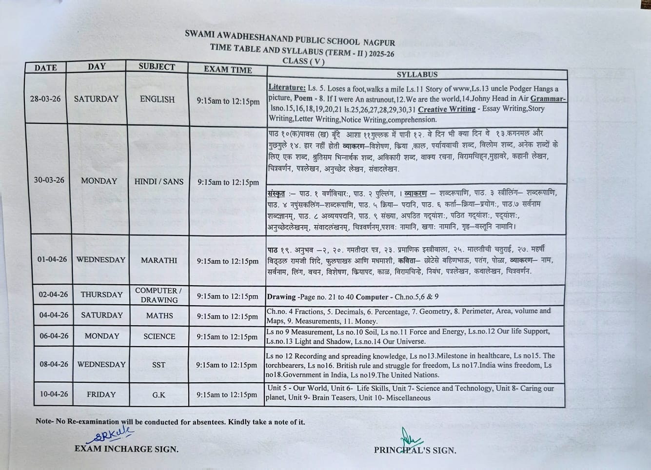 TERM-II Exam Time table and Syllabus